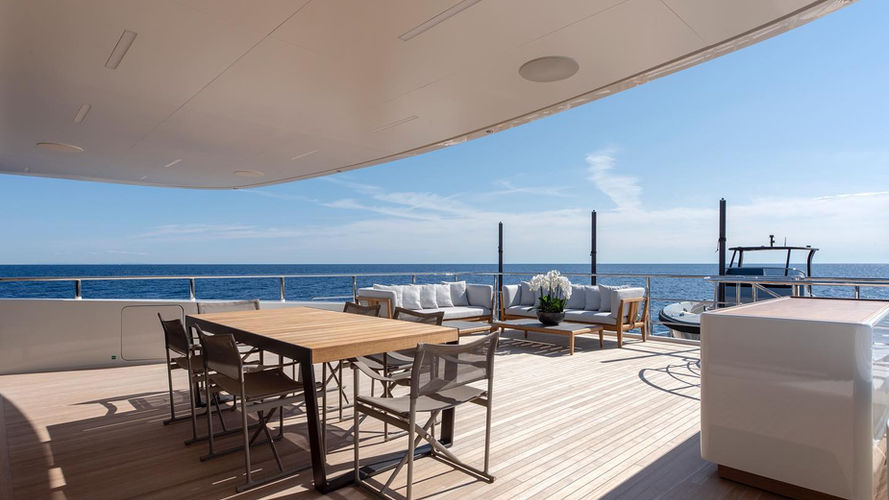 Tijdens uw reis met Moka vindt u genoeg om u bezig te houden en te vermaken, met name het zwembad, handig om uw techniek te oefenen of om gewoon af te koelen. Een naar voren geplaatste bovenbouw creëert massa's aanpasbare achterdekruimte die kan worden gebruikt om tenders en speelgoed op te slaan, of wanneer deze voor anker ligt, verandert in het perfecte recreatiegebied. Daarnaast beschikt Moka over een bijzondere beach club met groot zwemplatform en een bar. Met haar geavanceerde stabilisatiesysteem aan boord vermindert het zijwaarts rollen van het jacht en belooft het de gasten uitzonderlijk comfort voor anker of onderweg.