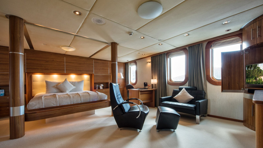 Sherakhan biedt accommodatie aan maximaal 26 gasten in 13 suites, bestaande uit een master suite, twee VIP-hutten, vier tweepersoonshutten en zes tweepersoonshutten. De uiterst ruime mastersuite met volledige lichtbundel heeft een eigen studeerkamer. U vindt er genoeg om u bezig te houden en te vermaken, zoals een sauna om u te helpen detoxen en te regenereren. Voor de ultieme ontspanningservaring biedt het jacht een luxe spa en kunt u een bezoek brengen aan de goed uitgeruste fitnessruimte zodat u uw fitnessroutine op zee kunt bijhouden. Wat uw activiteiten ook zijn, u zult merken dat een aantal indrukwekkende functies naadloos zijn geïntegreerd om u te helpen, zoals Wi-Fi-connectiviteit, zodat u altijd verbonden kunt blijven, mocht u dat willen. Ervaar volledig comfort tijdens het charteren dankzij airconditioning.